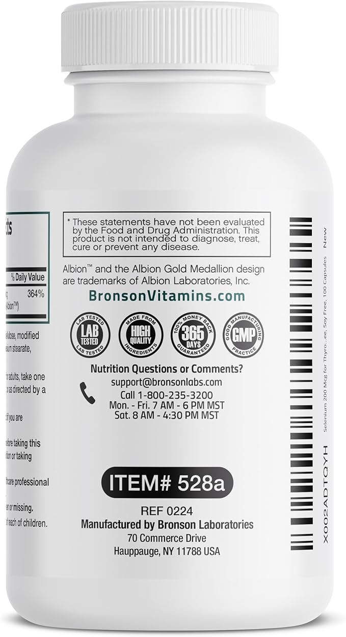 - Chelated Superior Absorption Selenium: By utilizing the premier manufacturer of chelated minerals (Albion), Bronson’s Selenium 200 MCG provides easy absorption, stability and overall quality. Albion Minerals are backed by science and an impressive 150+ patents ranging from manufacturing processes to food applications.