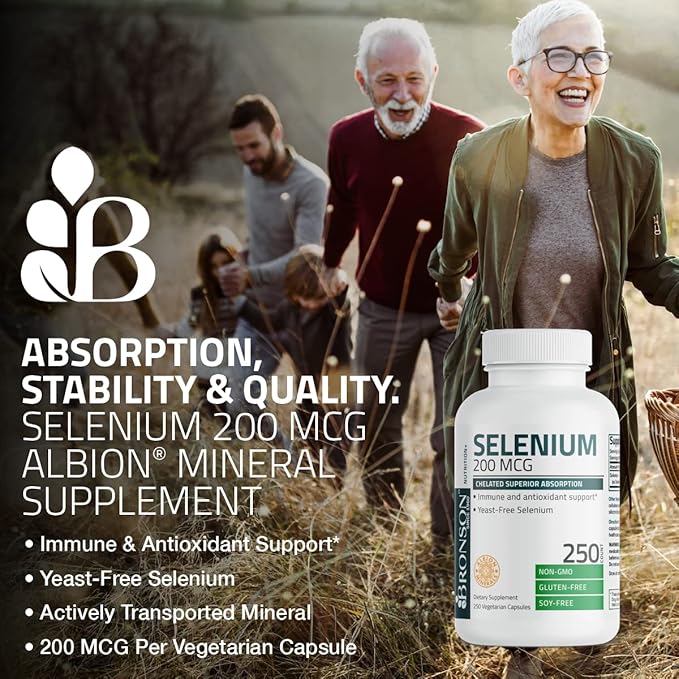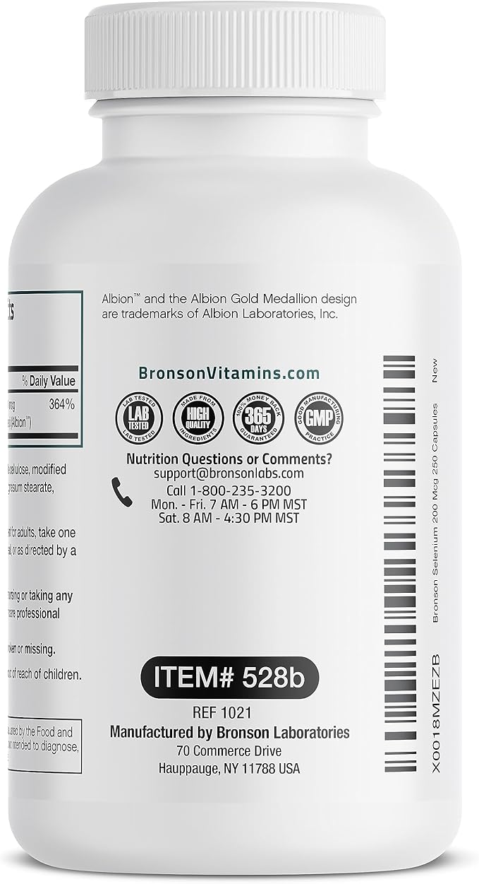 - Chelated Superior Absorption Selenium: By utilizing the premier manufacturer of chelated minerals (Albion), Bronson’s Selenium 200 MCG provides easy absorption, stability and overall quality. Albion Minerals are backed by science and an impressive 150+ patents ranging from manufacturing processes to food applications.