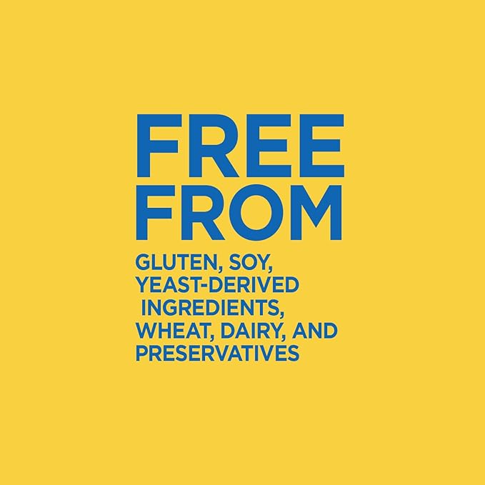 - Gluten-free. No soy, yeast-derived ingredients, wheat, dairy, or preservatives.