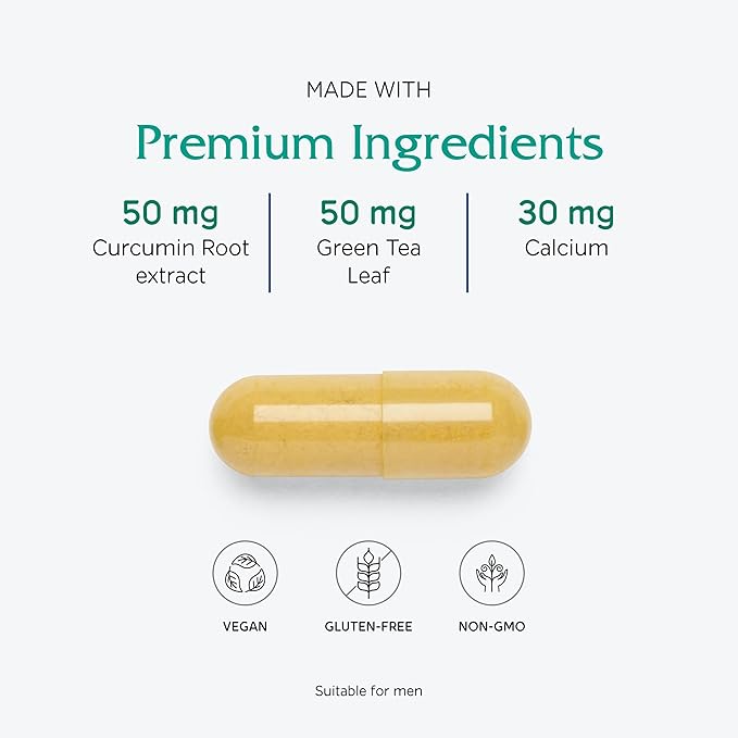 - Curcumin is included to maintain a healthy inflammation response. Green Tea is added for its antioxidant and cellular support. L-Theanine adds a level of calming support to address the possible stressors accompanying this time of hormonal change