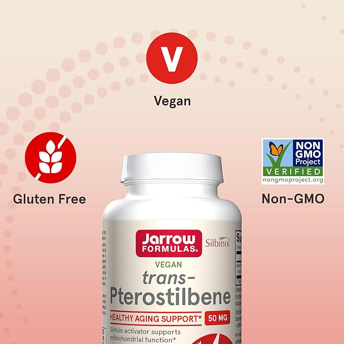 Jarrow Formulas Pterostilbene 50mg for Antioxidant Support, Dietary Supplement Supports Healthy Aging, 60 Veggie Capsules, 60 Day Supply
