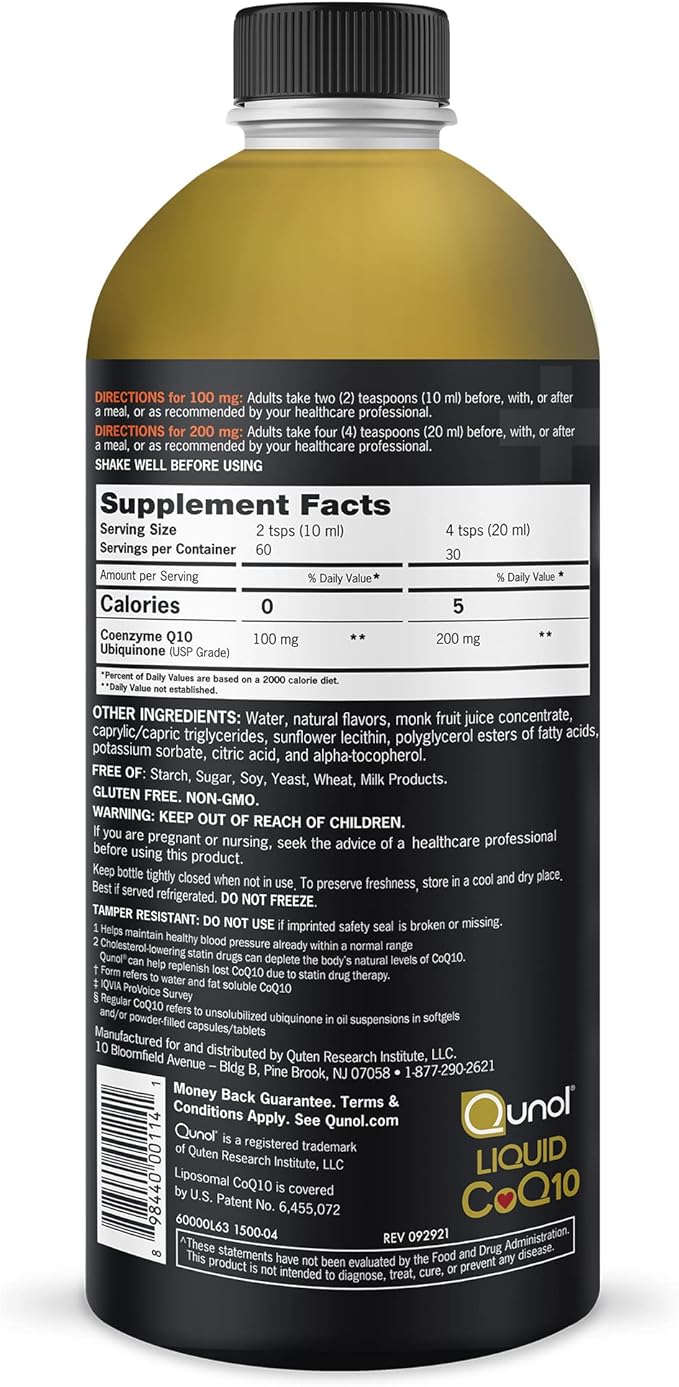 Qunol Liquid CoQ10 100mg, Superior Absorption Natural Supplement Form of Coenzyme Q10, Antioxidant for Heart Health, Orange Pineapple Flavored, 60 Servings, 20.3 oz Bottle