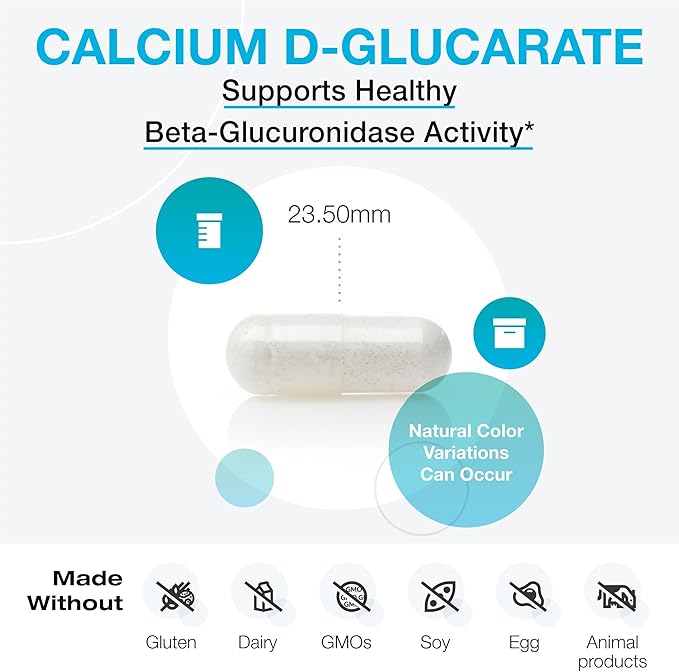 - 500mg of the supplemental, patented calcium salt form of D-glucaric acid.