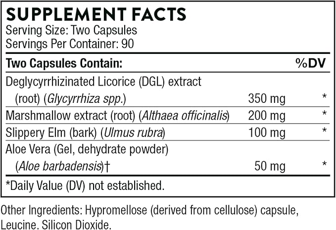 - DGL: Licorice in DGL form so no potential blood pressure-increasing effects of glycyrrhizin