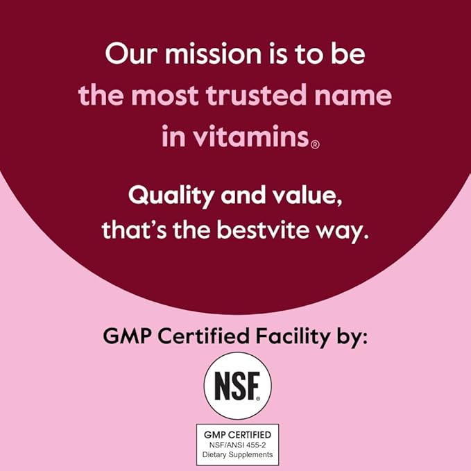 - NSF GMP CERTIFIED: Bestvite’s facility is NSF/ANSI 455-2 Dietary Supplements Good Manufacturing Practice (GMP) certified. Earning GMP certification from NSF verifies that a manufacturing facility has the proper methods, equipment, facilities, and controls in place to produce dietary supplement products.