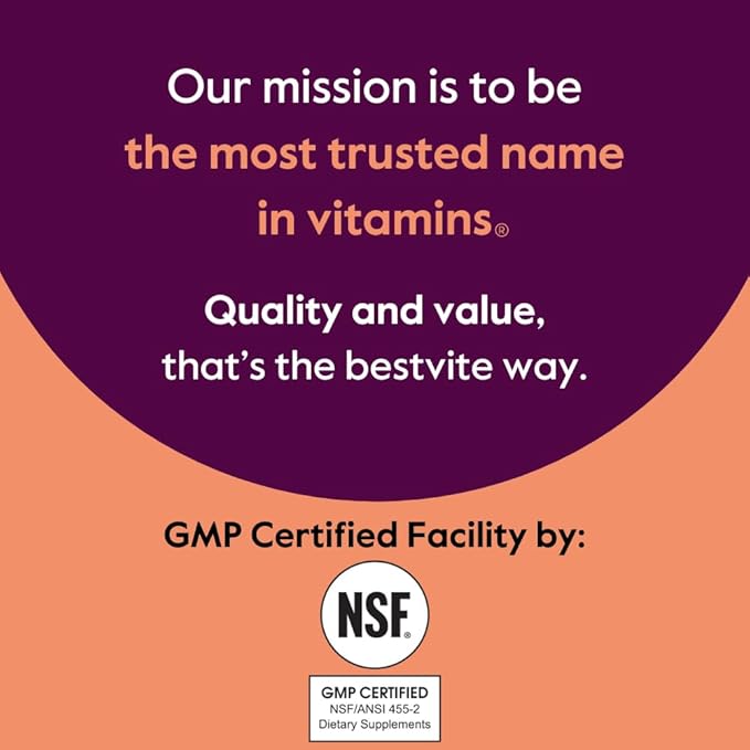 - NSF GMP CERTIFIED FACILITY: Bestvite’s facility is NSF/ANSI 455-2 Dietary Supplements Good Manufacturing Practice (GMP) certified. Earning GMP certification from NSF verifies that a manufacturing facility has the proper methods, equipment, facilities, and controls in place to produce dietary supplement products.