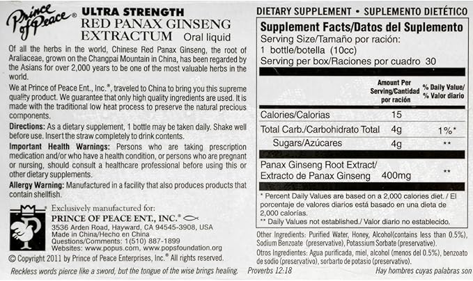 Prince of Peace Red Panax Ginseng Extractum Ultra Strength - 30 Vials