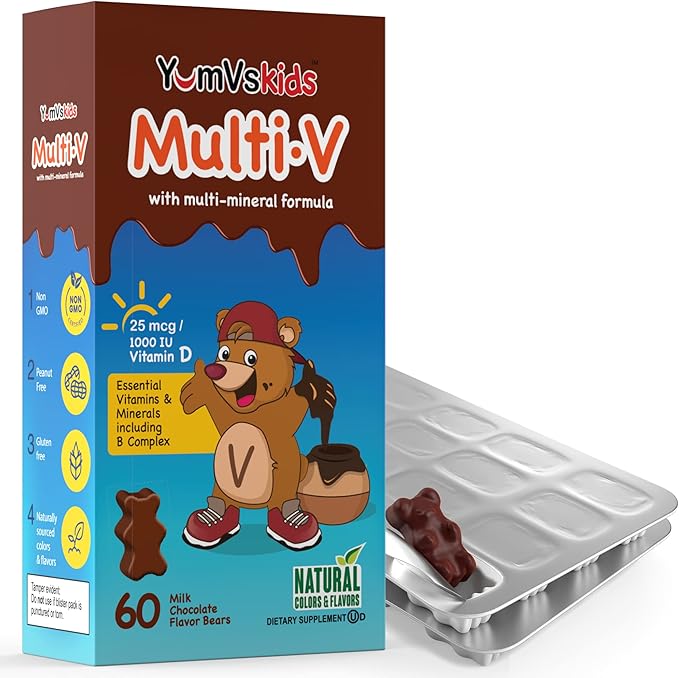 - YUM-V's Multivitamin plus Multimineral Formula for Kids (60 count). Milk chocolate bears contain essential vitamins and minerals for children's nutrition and health.