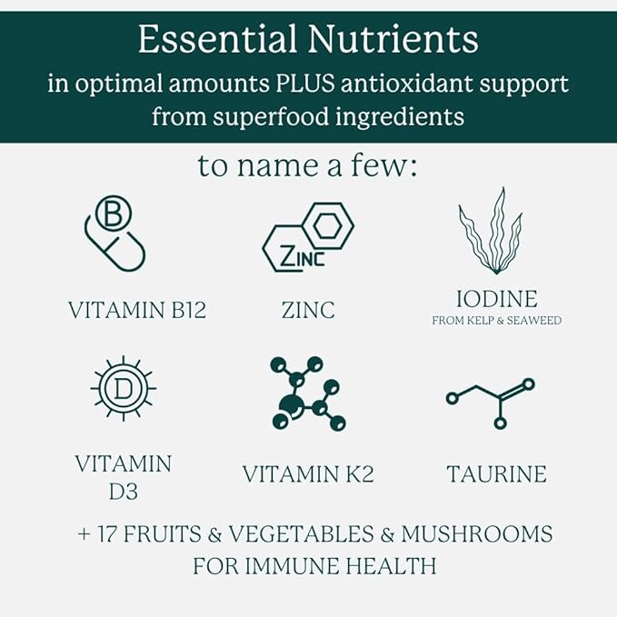 - MULTI FOR HEALTH, STRENGTH, and LONGEVITY: Support your healthy diet with a daily dose of science-backed vitamins/minerals meticulously crafted from whole foods, including organic fruits and vegetables, enriched with powerful antioxidants and phytochemicals. Ideal for vegans or near-vegans, you’ll find the optimal amount of low dietary vitamins like B12, iodine, D3, K2, and zinc ensuring that you get optimal exposure on your healthy journey.