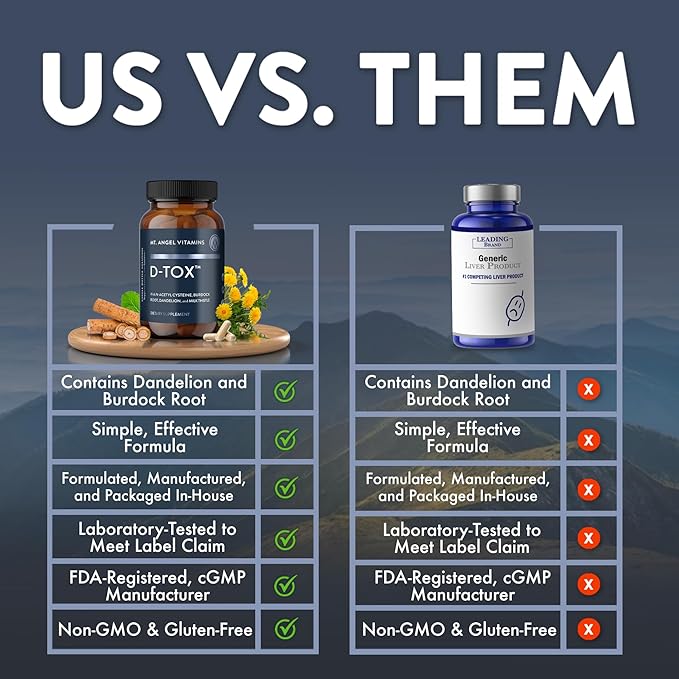 Mt. Angel Vitamins D-Tox - Advanced Liver Cleanse & Detox Repair Supplement, Supports Fatty Liver Health & Enzyme Reduction with Milk Thistle, NAC, and Dandelion Root - 60 Capsules