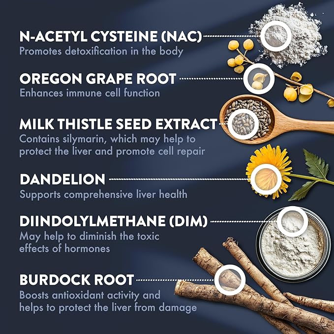 - Comprehensive Cleanse: Oregon Grape Root and Diindolylmethane (DIM) enhance detoxification, ensuring your liver operates at peak efficiency.