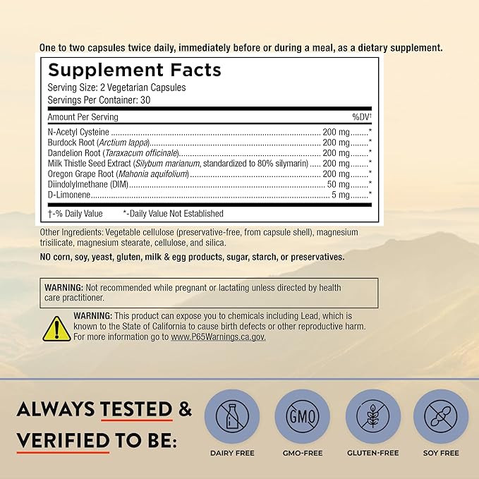 - Daily Wellness Support: Convenient 60-capsule supply for a 30-day cleanse. Take 1-2 capsules daily for ongoing liver health and detox.