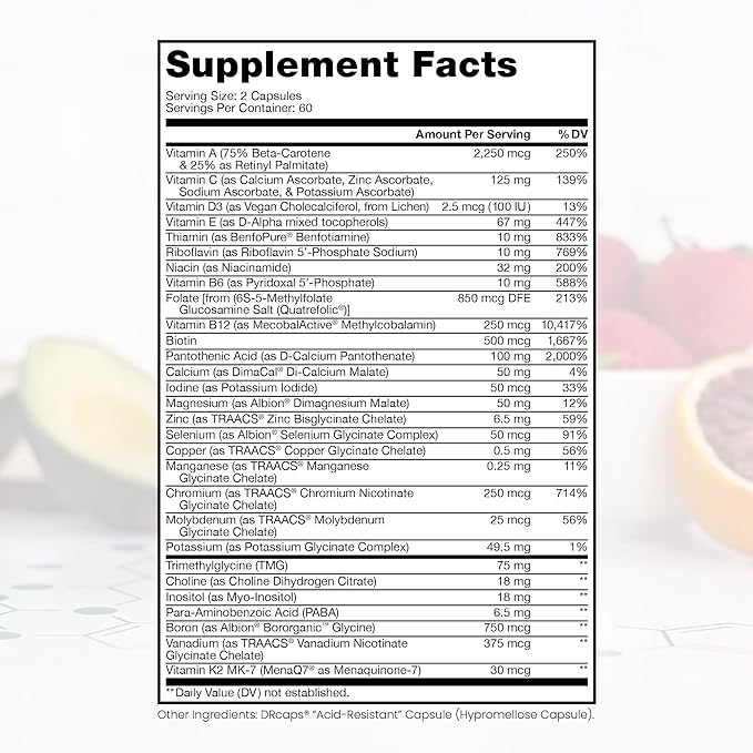 - πππππππ ππππππππππ: When supplementing, absorption is key! Methyl Multi without Iron is formulated with Quatrefolic Folate (5-MTHF), Albion TRAACS mineral chelates, and other micronutrients in their pre-methylated and coenzyme forms for optimal absorption and bioavailability, all together in DRcaps acid resistant vegetable capsules.