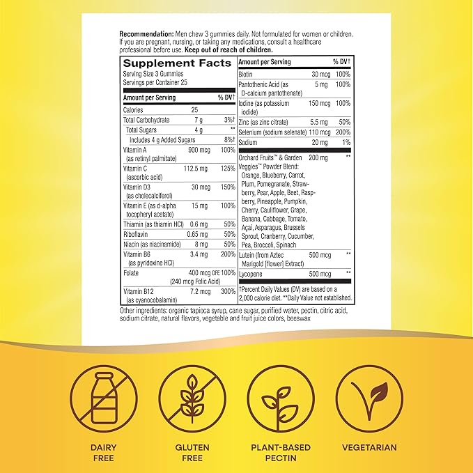 - Formulated with 15 vitamins and minerals for men’s wellness, including vitamin A, vitamin C, vitamin D3, and selenium. Full B-vitamin complex helps convert food to fuel.*