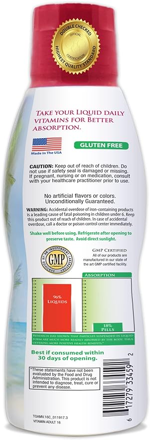 - ✅ Maximum absorption: liquid vitamins absorbed by your body up to 96% - compared to pills/capsules that are only absorbed about 18%.