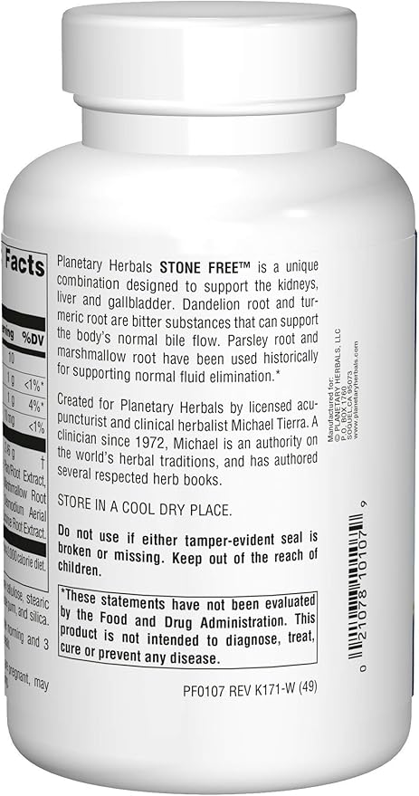 - KIDNEY SUPPORT. Planetary Herbals offers you Stone Free, a unique blend of turmeric root, coin-leaf desmodium, lysimachia, dandelion root extract, ginger root, lemon balm leaf, marshmallow root, parsley root, dandelion root, and licorice root. These herbs have been used historically to support the kidneys, liver and gallbladder and promote healthy organ function.