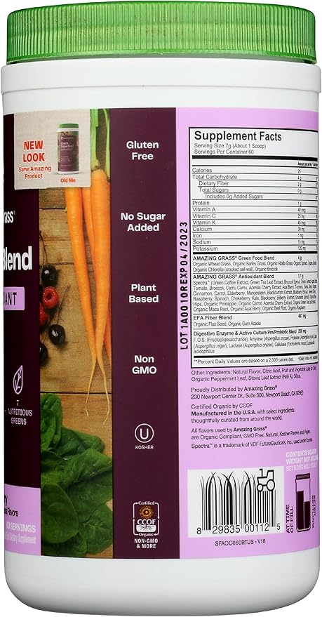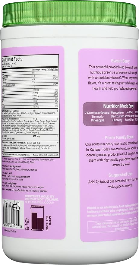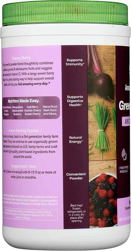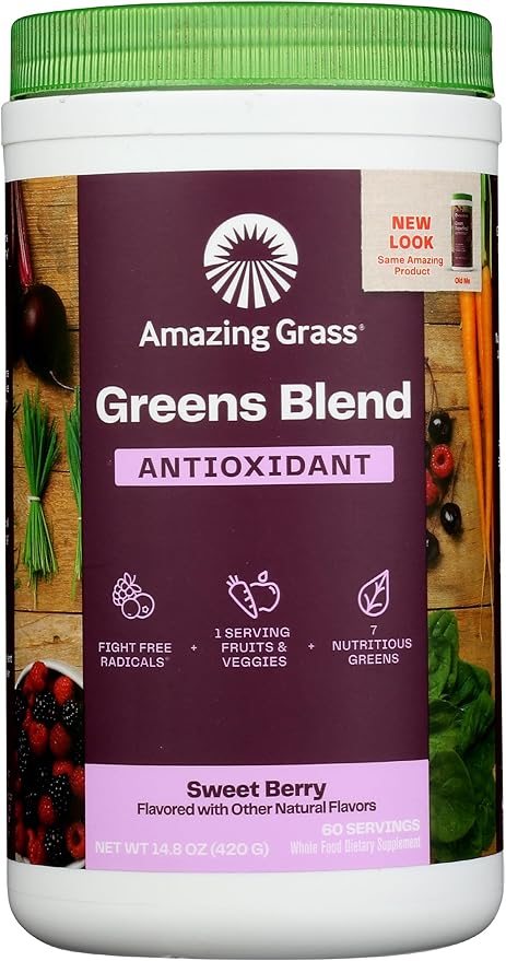 Amazing Grass Greens Superfood Antioxidant: Greens Powder with Organic Spirulina, Beet Root Powder, Elderberry & Probiotics, Sweet Berry, 60 Servings (Packaging May Vary)