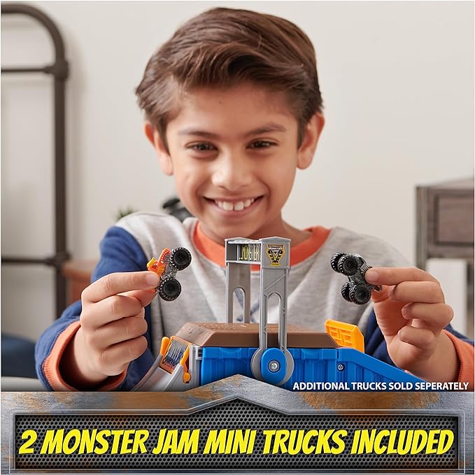 Monster Jam Mini Freestyle Flip Arena Playset and Storage with 2 Mini Monster Jam Trucks, Kids Toys for Boys and Girls Ages 3 and up