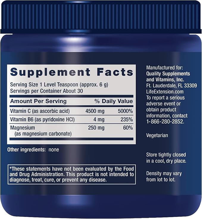 Life Extension Effervescent Vitamin C Magnesium Crystals, immediate Relief from Occasional Constipation, Gluten-Free, Non-GMO, Vegetarian, Net Wt. 180 Grams
