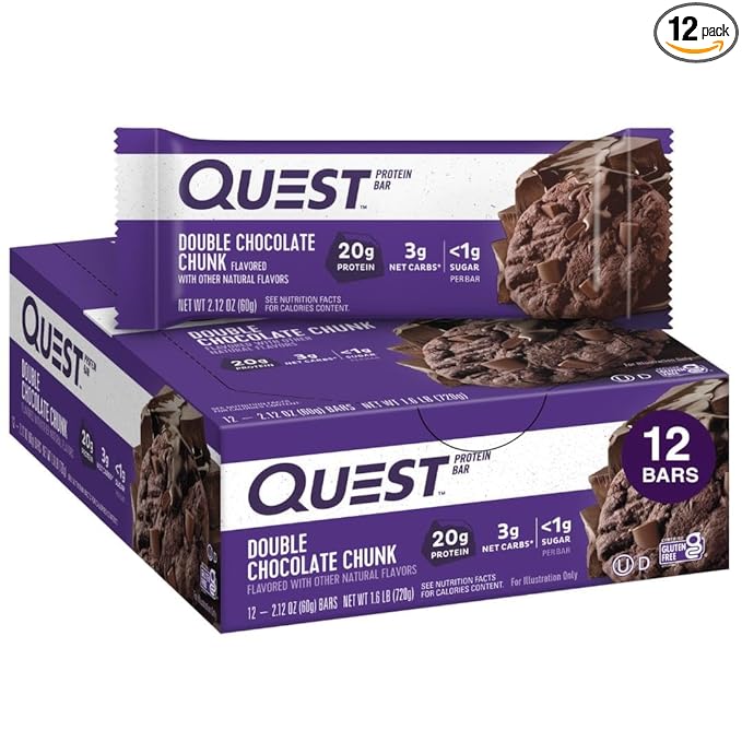 - YOU DESERVE A SPECIAL TREAT: The Quest Double Chocolate Chunk Protein Bars provide double the chocolate for all the chocolate lovers out there. Best of all, our bar has 20g protein, 4g net carbs and less than 1g of sugar per bar