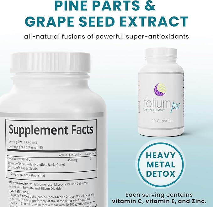 Folium pX Pure Pine Tree Parts/Grape Seed Extract: Nature's Powerhouse Support for Full Body Cleanse and Metal Detox