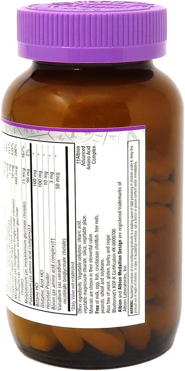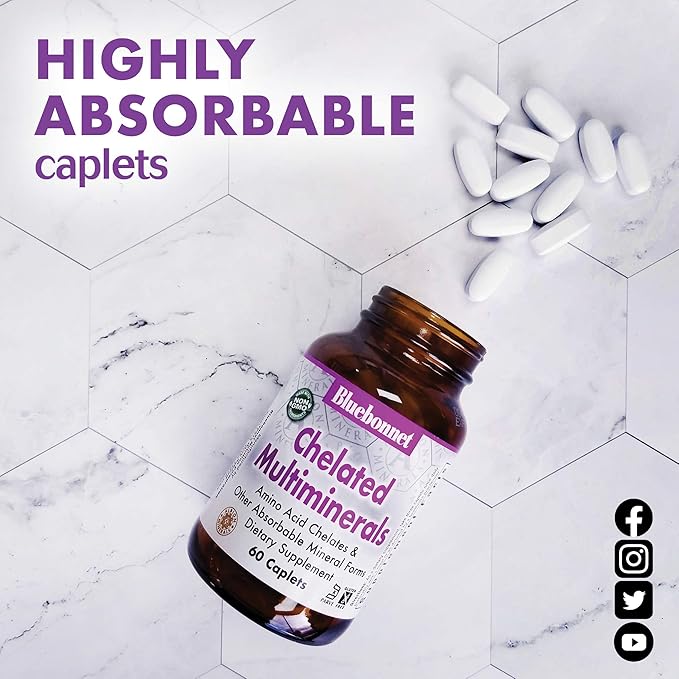 Bluebonnet Nutrition High Potency Chelated Multiminerals, Albion Chelated Minerals, Soy-Free, Gluten-Free, Non-GMO, Kosher Certified, Dairy-Free, 120 Caplets, 40 Servings