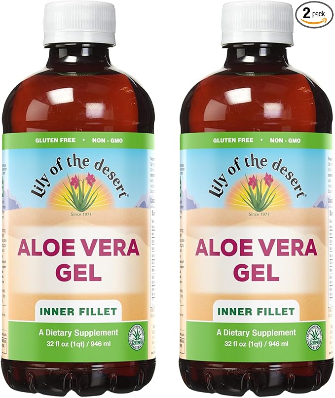 Lily of the Desert Aloe Vera Gel - Inner Fillet Thicker Consistency Aloe Vera Drink with Natural Vitamins,Digestive Enzymes for Gut Health, Stomach Relief, Wellness, Glowing Skin, 32 Fl Oz (Pack of 2)