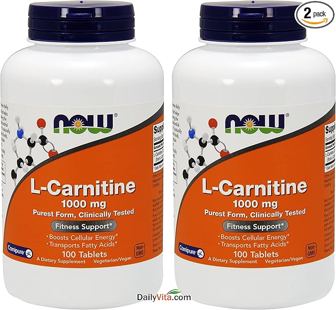 NOW Foods L- Carnitine Tartrate 1000mg, 100 Tablets (Pack of 2)