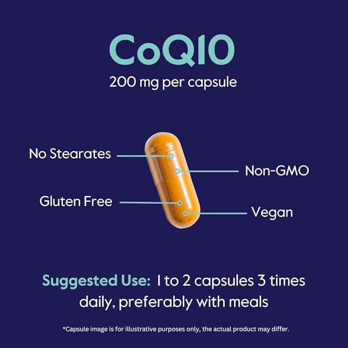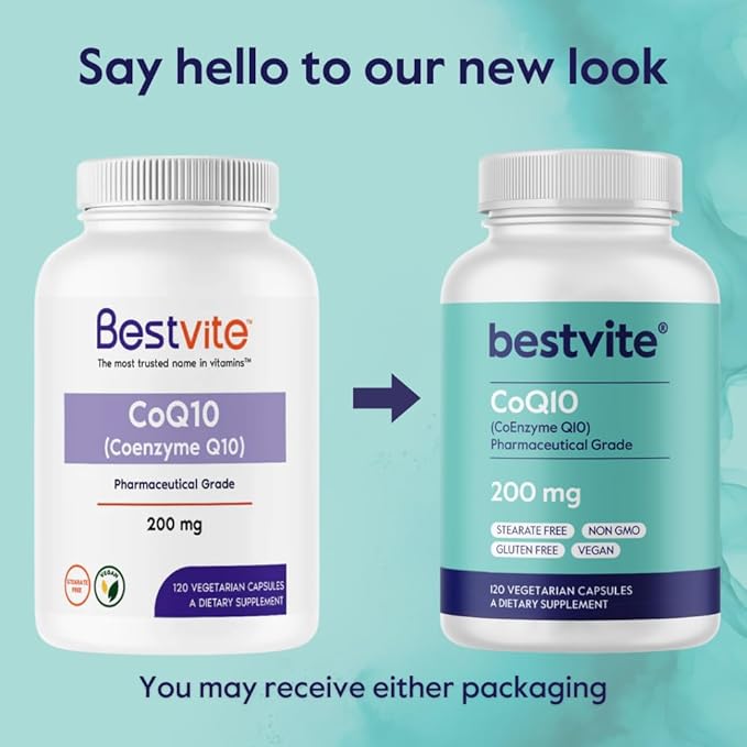 BESTVITE CoQ10 200mg (120 Vegetarian Capsules) Naturally Fermented - No Stearates - Vegan - Gluten Free - Non GMO