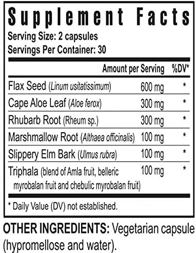 - Natural » Our formula incorporates naturally sourced components. Slippery Elm, Marshmallow, and Rhubarb promote regular bowel movements and may contribute to heart health.