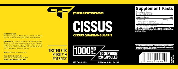 Primaforce Cissus Quadrangularis Extract, 120 Capsules, 1000mg per Serving - Gluten Free, Non-GMO