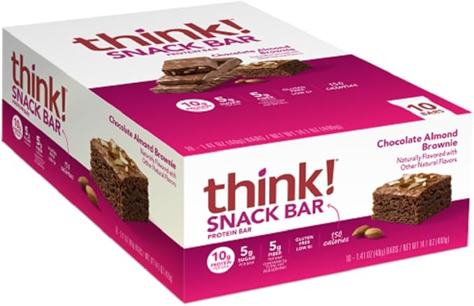 - Includes 10 think! Chocolate Almond Brownie bars.