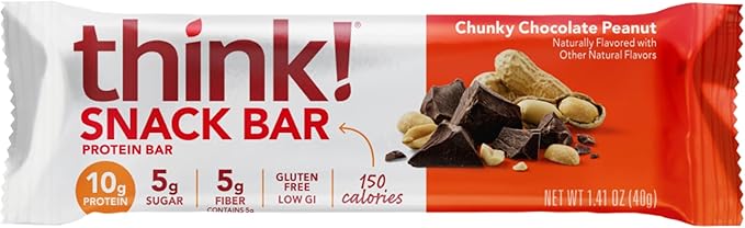 think! Protein Bars with Chicory Root for Fiber, Digestive Support, Gluten Free with Whey Protein Isolate, Chunky Chocolate Peanut, Snack Bars without Artificial Sweeteners, 1.4 Oz (10 Count)