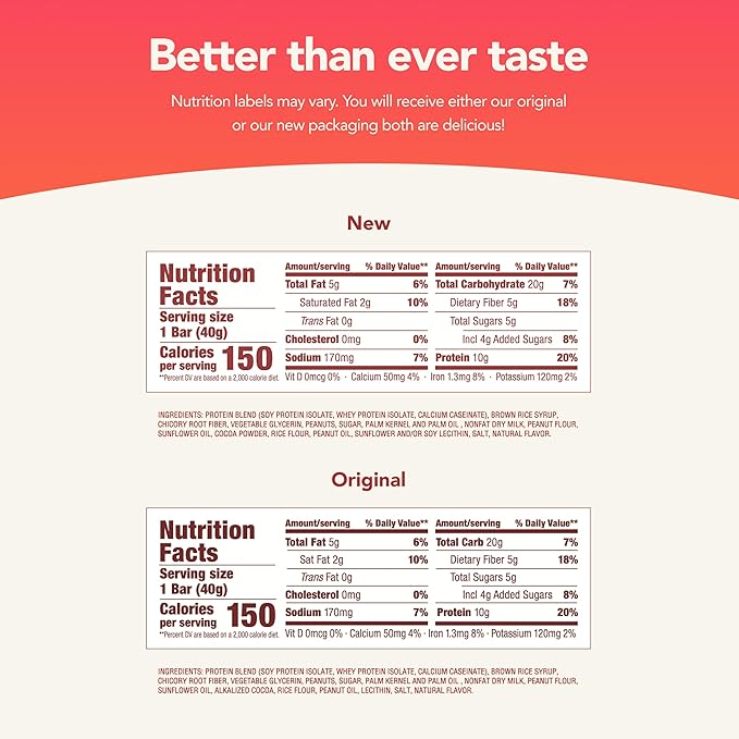- With our relaunch of Protein & Fiber bars as Protein+ 150 Calorie bars, we have made a small recipe change, introduced a new coating, and simplifyied the ingredient list Most importantly, we hope you agree that we did not compromise on their delicious taste.