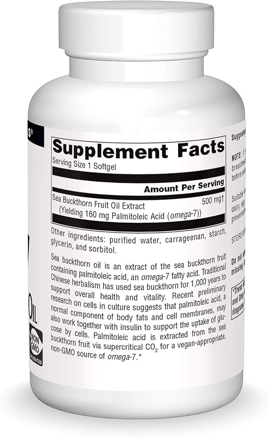 - SOURCE NATURALS BENEFITS. Sea buckthorn oil is an extract of the sea buckthorn fruit containing palmitoleic acid, an omega-7 fatty acid.