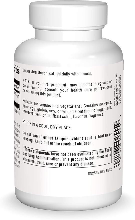 Source Naturals Omega-7 Sea Buckthorn Fruit Oil, Non-GMO, Vegan-Sourced for Health and Vitality* - 120 Vegan Softgels