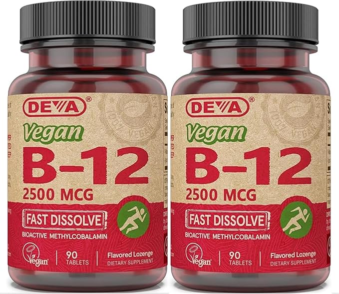DEVA Vegan Vitamins B-12, High Potency 2500 mcg B12, Fast Dissolve, Sublingual, 90 Tablets (Pack of 2)