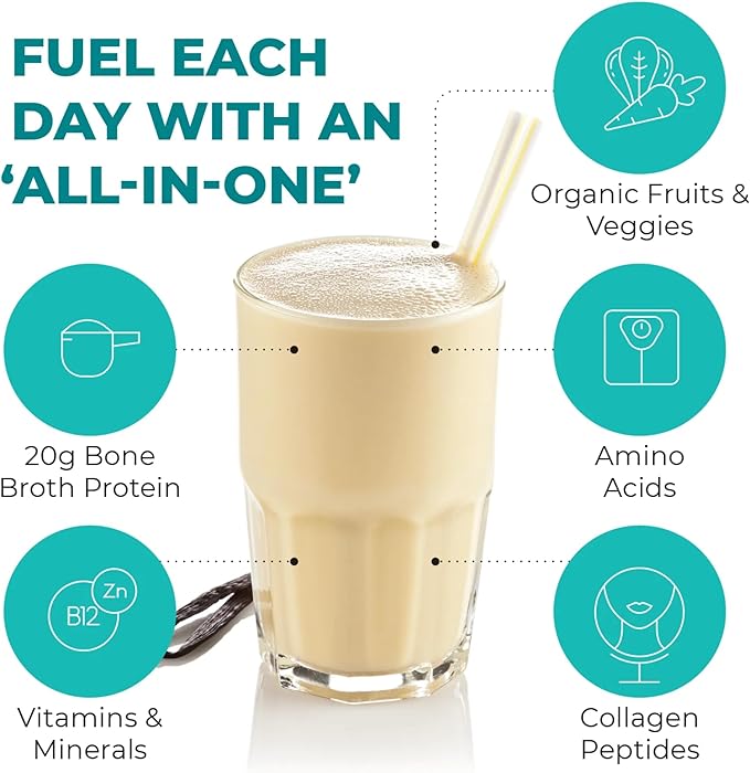 Reignite Wellness Vanilla Paleo-Inspired All-in-One Shake - Bone Broth Protein Powder - Healthy Shake Supports Lasting Energy with 20g of Protein (30 Servings, 2.3 lbs) - by JJ Virgin
