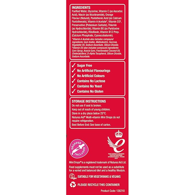 - Mini Drops Multivitamin liquid supplement contains a carefully balanced combination of 9 vitamins