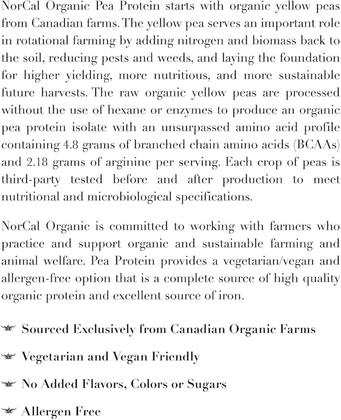 NorCal Organic - Premium Pea Protein Isolate - 100% Vegan and Organic - UNFLAVORED - 2 Pounds (Pack of 1) - 35 Servings