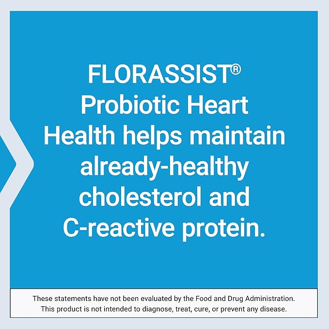 - C-reactive protein – When it comes to your heart, CRP is another powerful indicator of overall cardiovascular health. FLORASSIST Probiotic Heart Health helps maintain CRP at already-healthy levels.