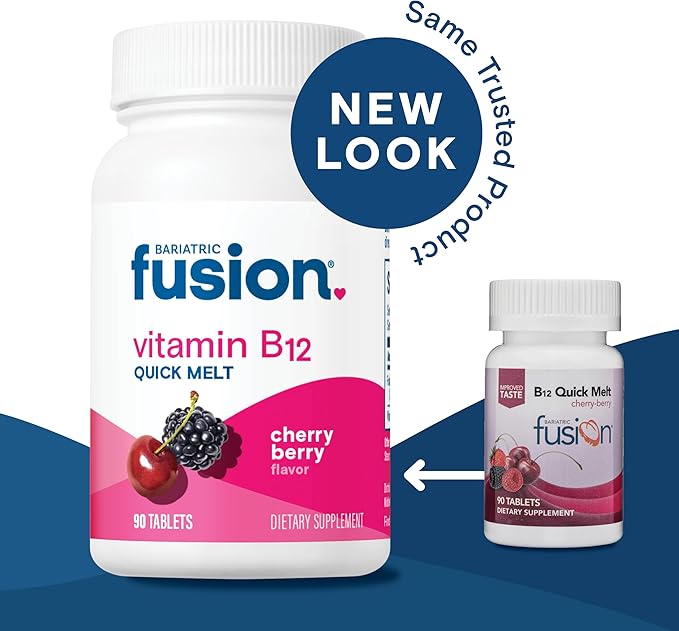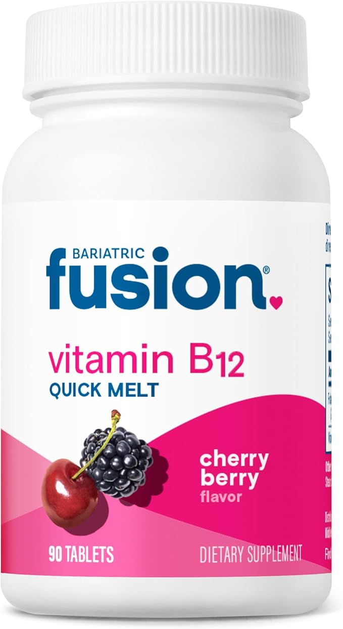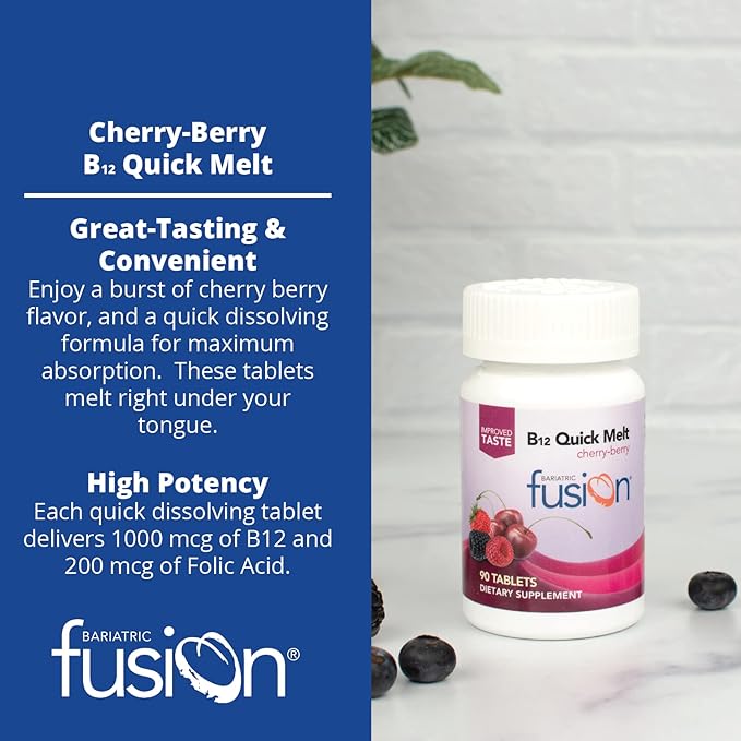 Bariatric Fusion Vitamin B12 Melt | Cherry Berry Flavored Tablets | Dissolves On Your Tongue B 12 Vitamin 1000 mcg and Folic Acid | Vegan B12 Vitamins | Gluten, Dairy & Soy Free | 90 Count