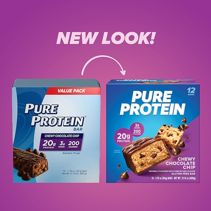 - NEW LOOK! You will receive (12) Pure Protein Bars, Chewy Chocolate Chip, 1.76oz