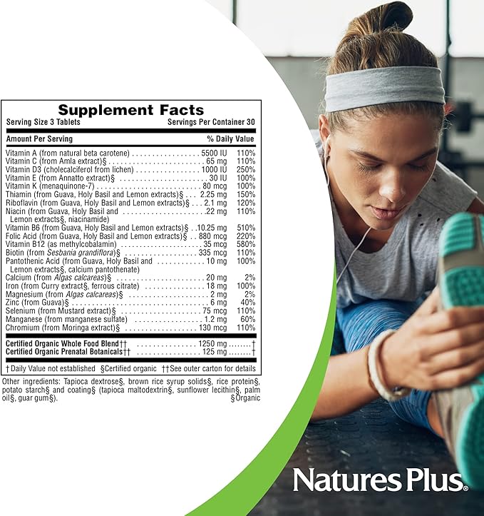 NaturesPlus Source of Life Garden Certified Organic Prenatal Multivitamin - 90 Vegan Tablets - Supports Reproductive Health & Pregnancy - Folic Acid - Non-GMO, Vegetarian, Gluten-Free - 30 Servings