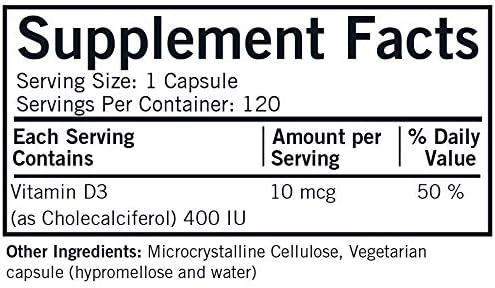 - Vitamin D-3 400 IU Capsules - Hypo, 120 Capsules