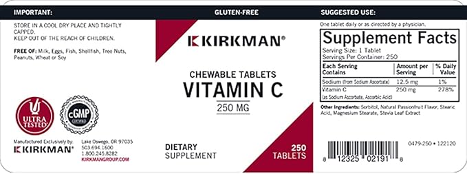 Kirkman Labs Vitamin C 250 mg Chewable Tablets with Stevia-250 Count