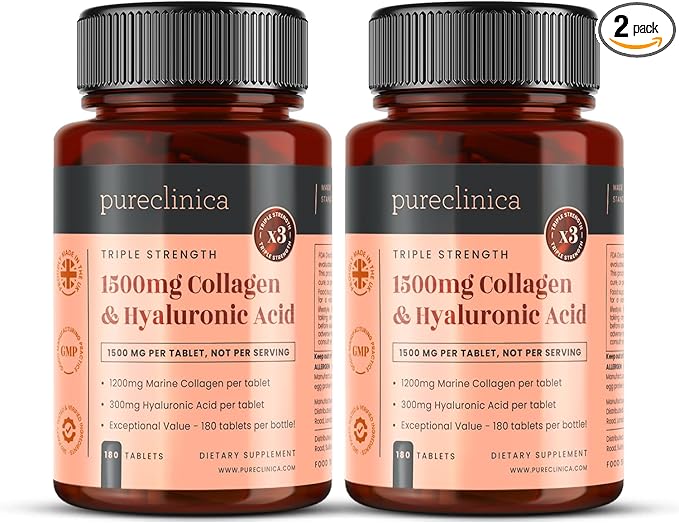 pureclinica UltraColl Collagen & Hyaluronic Acid 1500mg x 360 Tablets (2 Bottles of 180) - 1 Years Supply