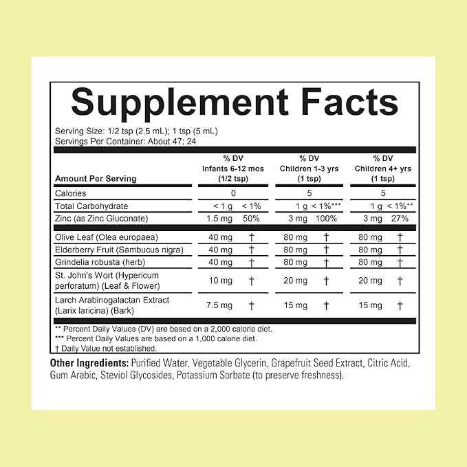 - Powerful Formula - This liquid immune support supplement is rich in herbs and minerals like Zinc, Olive Leaf, St. John’s Wort, and Elderberry, all known to promote a healthy immune response in children