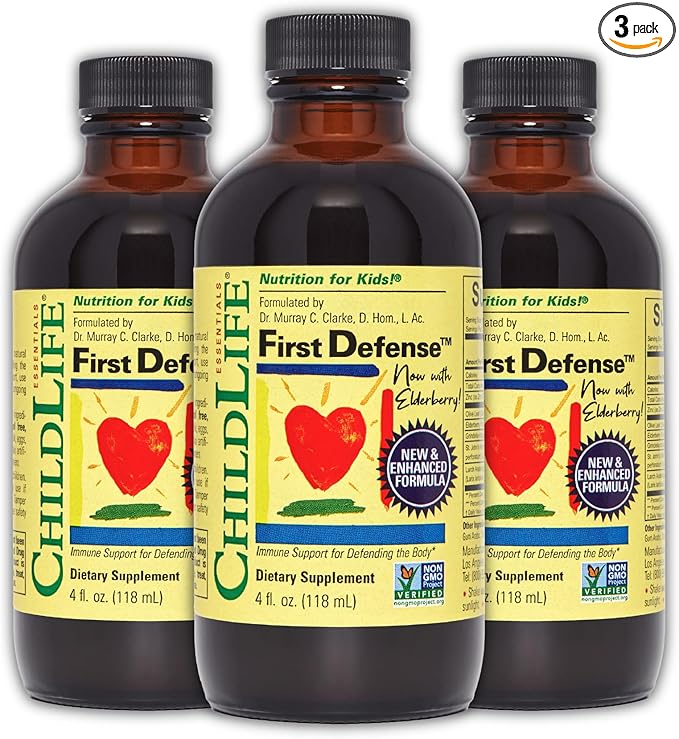 CHILDLIFE ESSENTIALS First Defense - Kids Immune Support, Immune Support for Kids, Toddlers 1-3, Babies 6 Months+, Vitamin Syrup with Elderberry, Zinc, Non GMO, Gluten Free - 4 Fl Oz (Pack of 3)