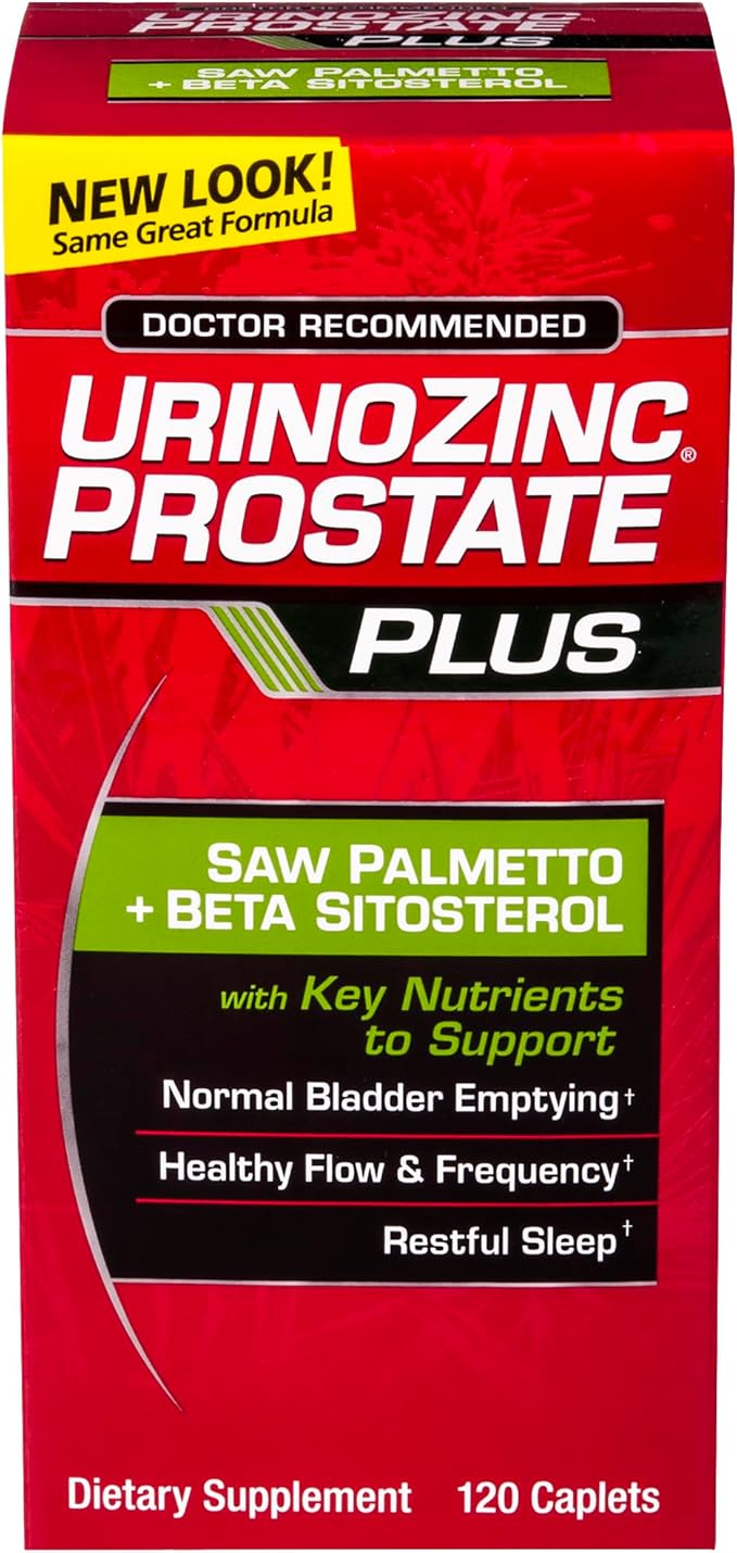 Urinozinc Prostate Plus, Saw Palmetto & Beta Sitosterol Supplement for Men, Reduce Frequent Urination (2 Month Supply, 120 Count)